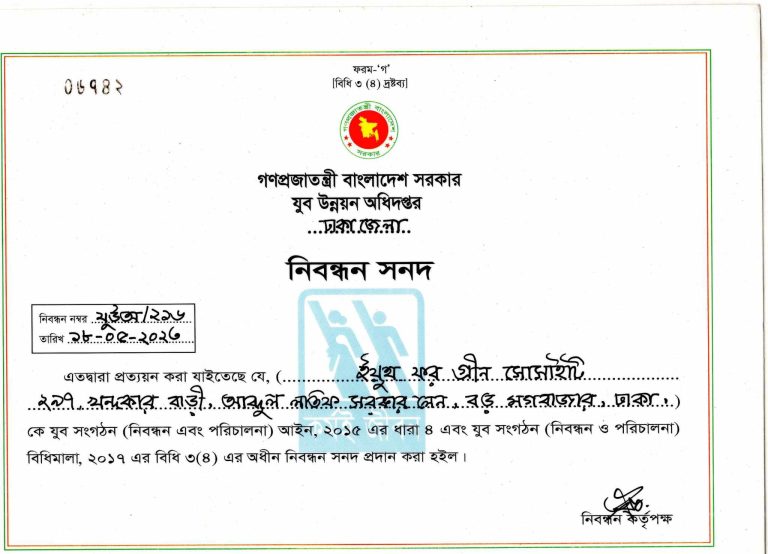 The name, "Ucchash Prohor" changed and the new name of the organization became "Youth for Green Society". And it gets registration as a Youth Organization. Ucchash Prohor becomes a subpart of the organization, that works with teenagers.